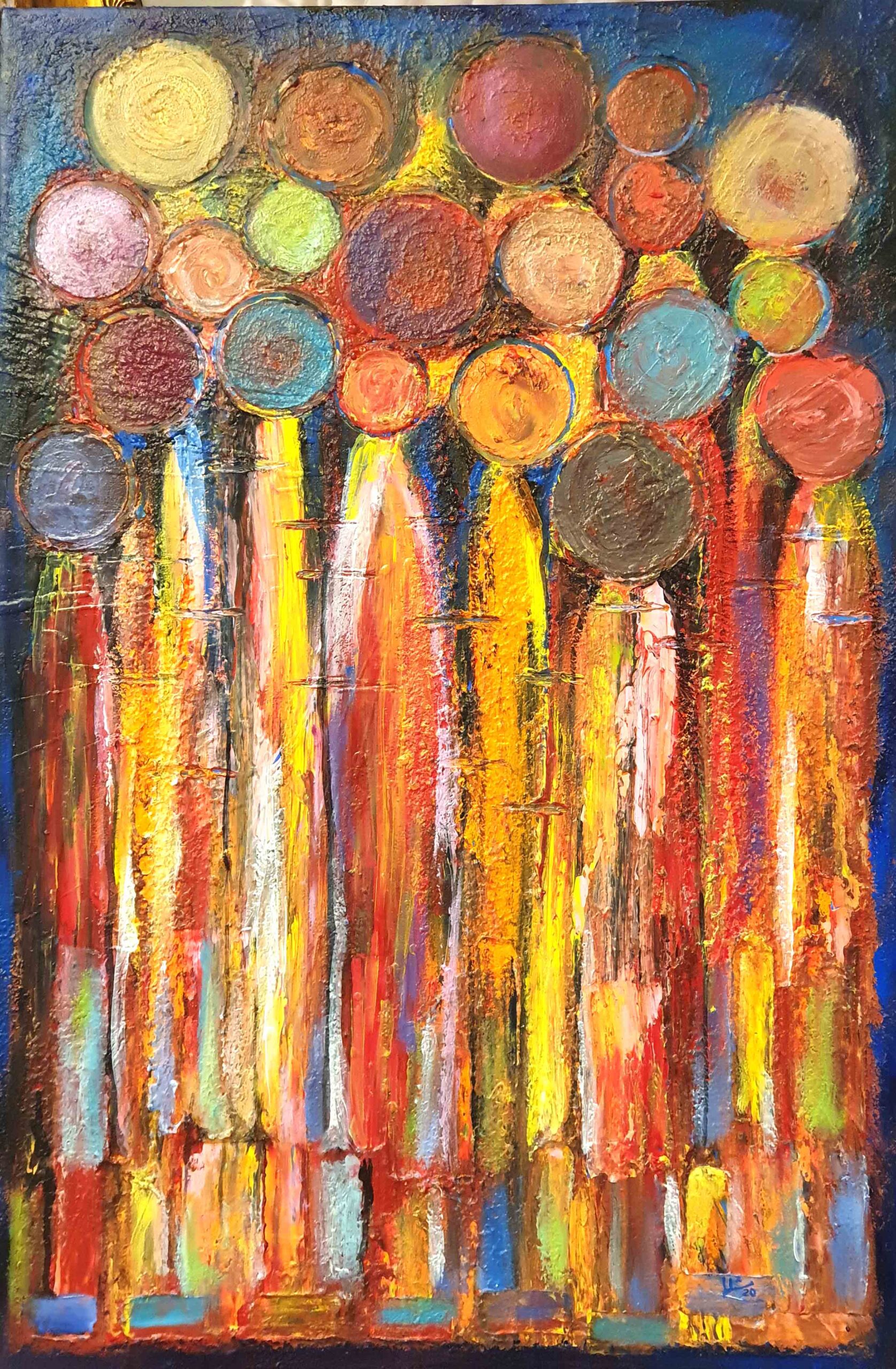 - Together as One- Acrylic on canvas 90×60 cms, AED 3500