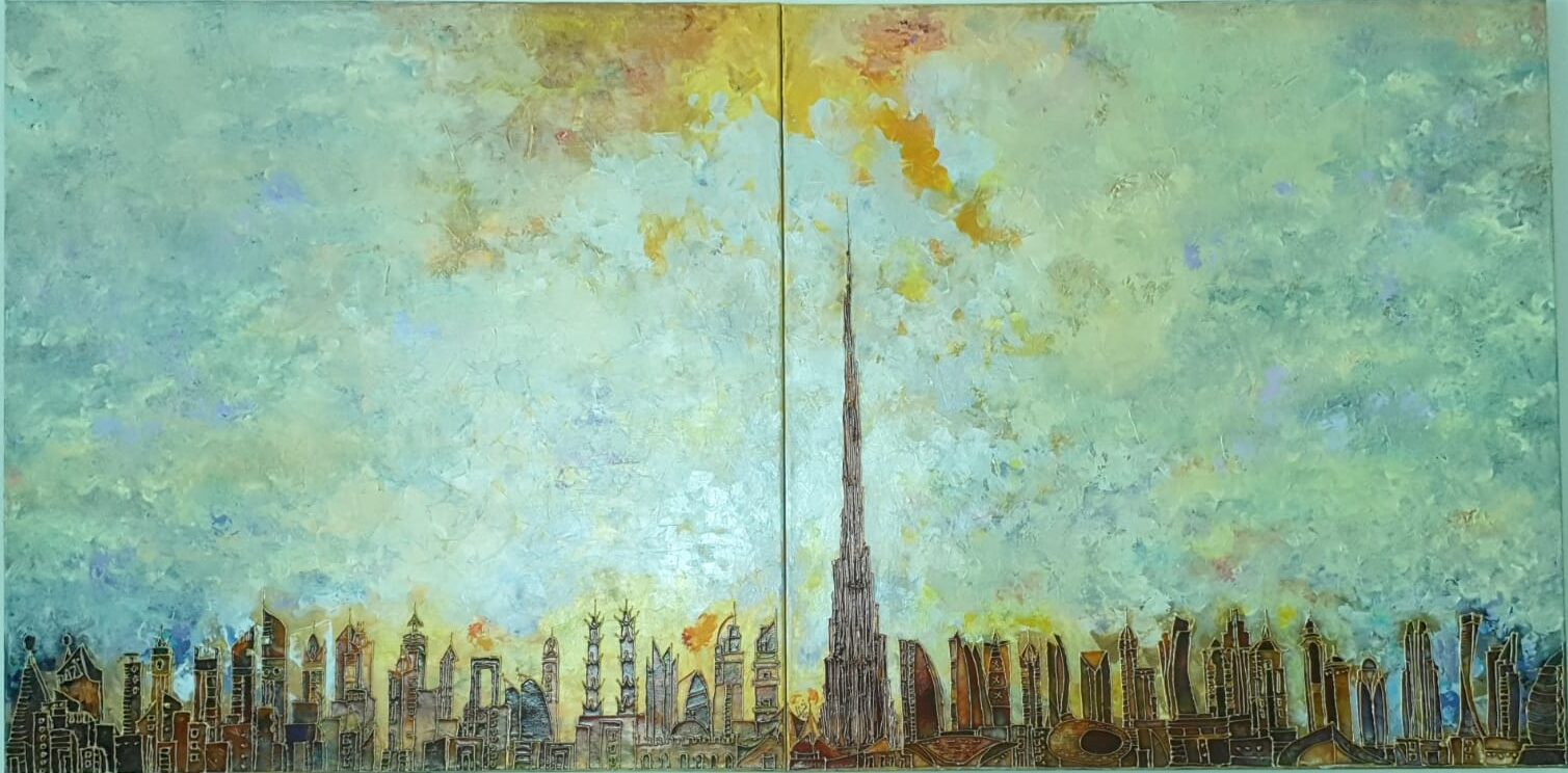 - SOLD- Embossed Dubai Skyline- 60×90 cms Acrylic on canvas