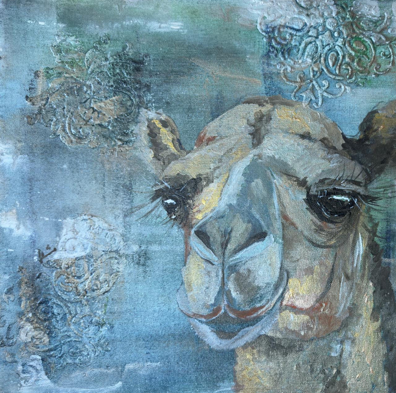 - Cerulean Camel- acrylic on canvas 40×40 cms AED 700